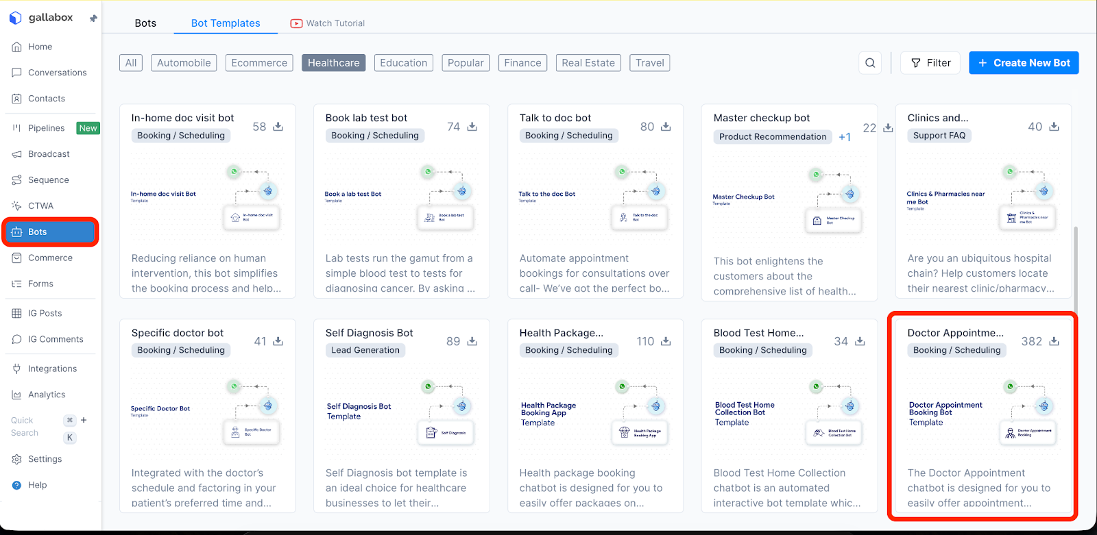 Click "Create New Bot" and name it "Appointment Booking Bot".
