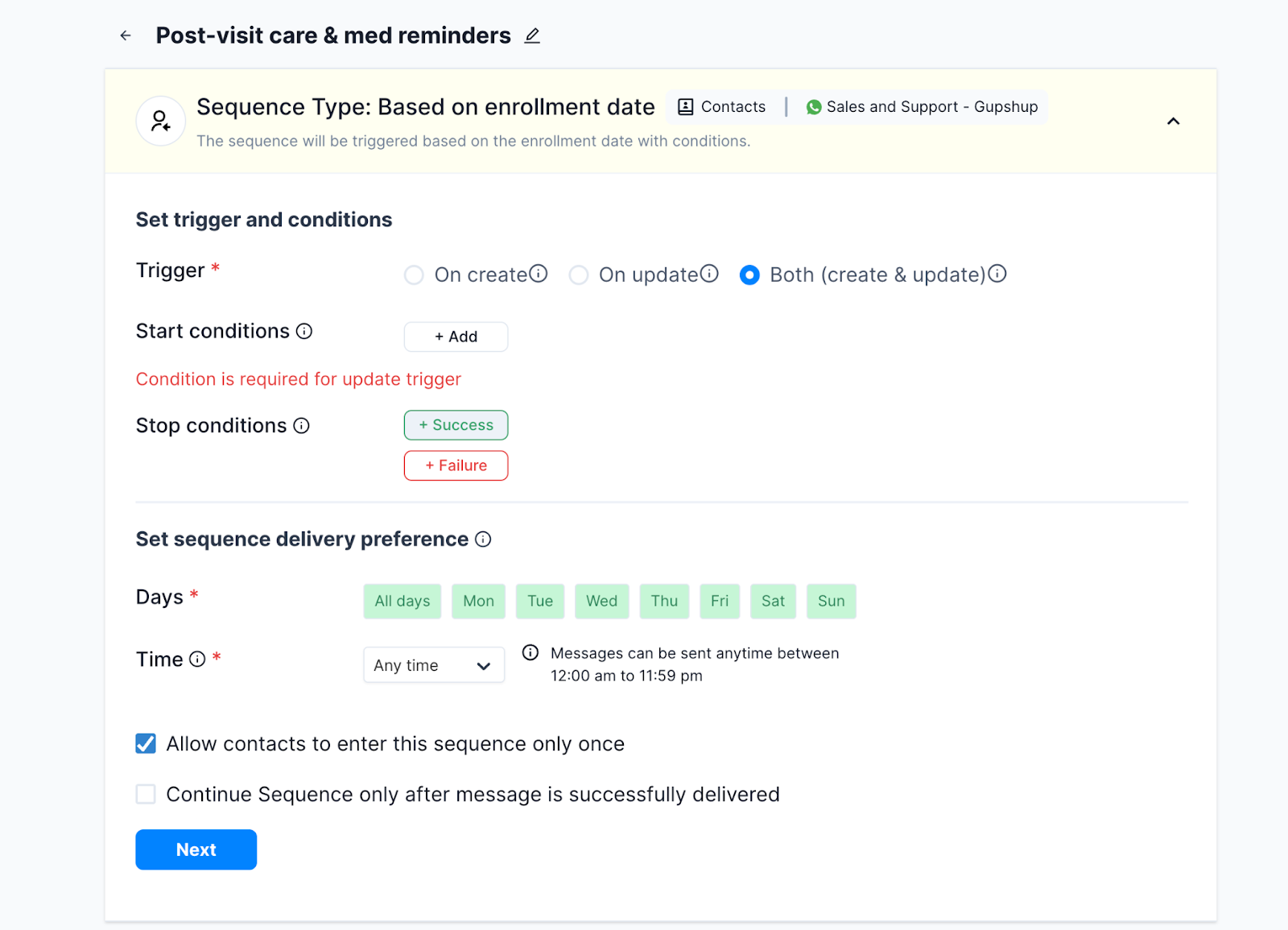 Here's how you can set up the post-visit care sequence: