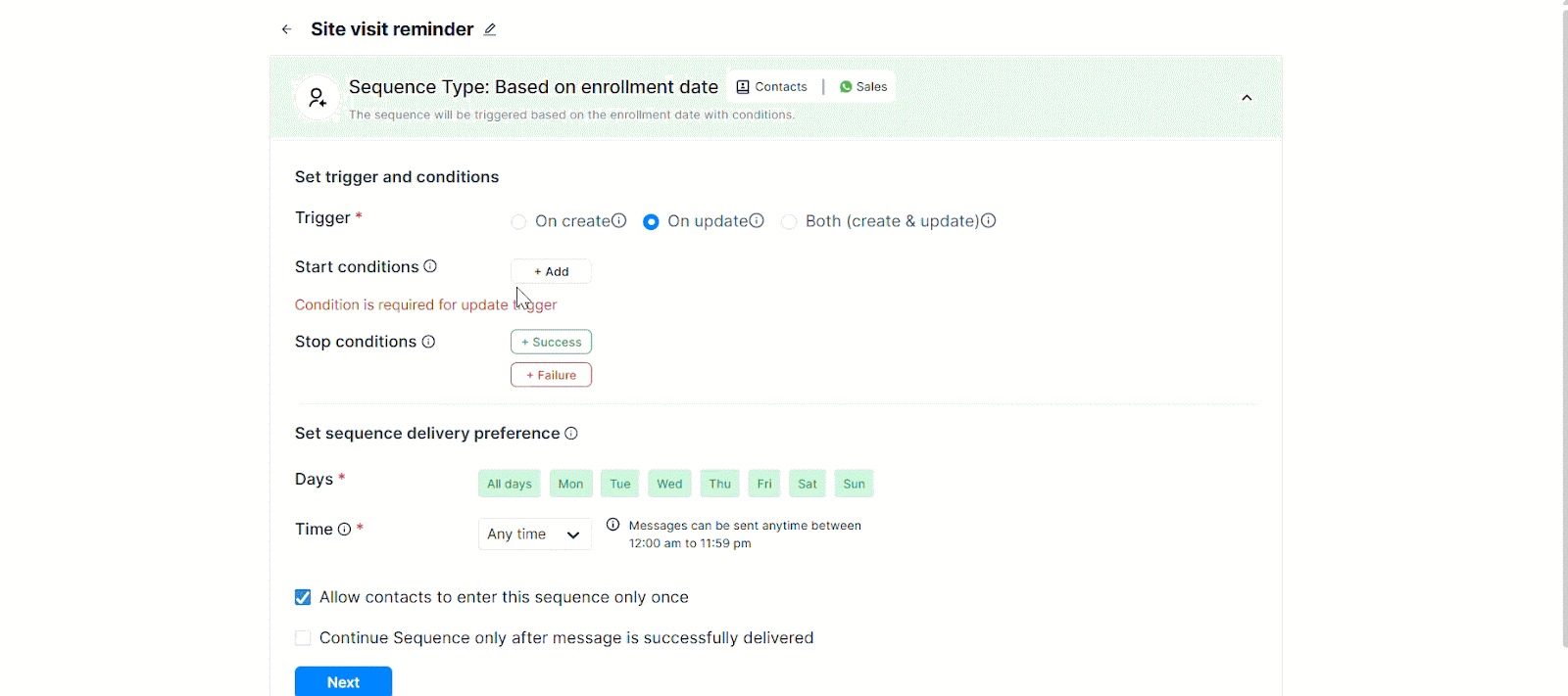 This is how you set up a site visit reminder sequence using Gallabox.