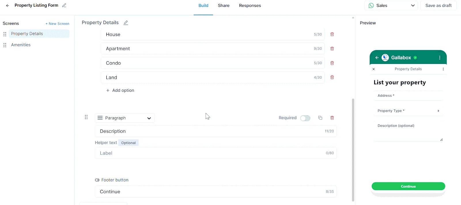 3. You can either build a form from scratch or select one from the list of pre-designed forms. Select the pre-designed “Property listing form”.