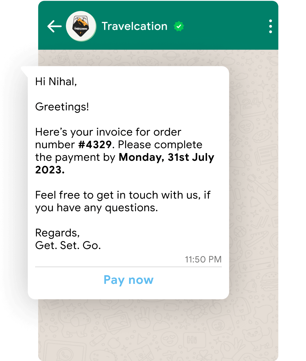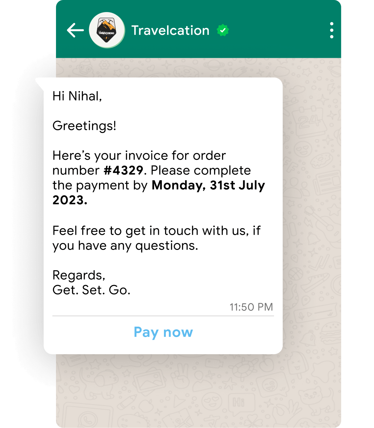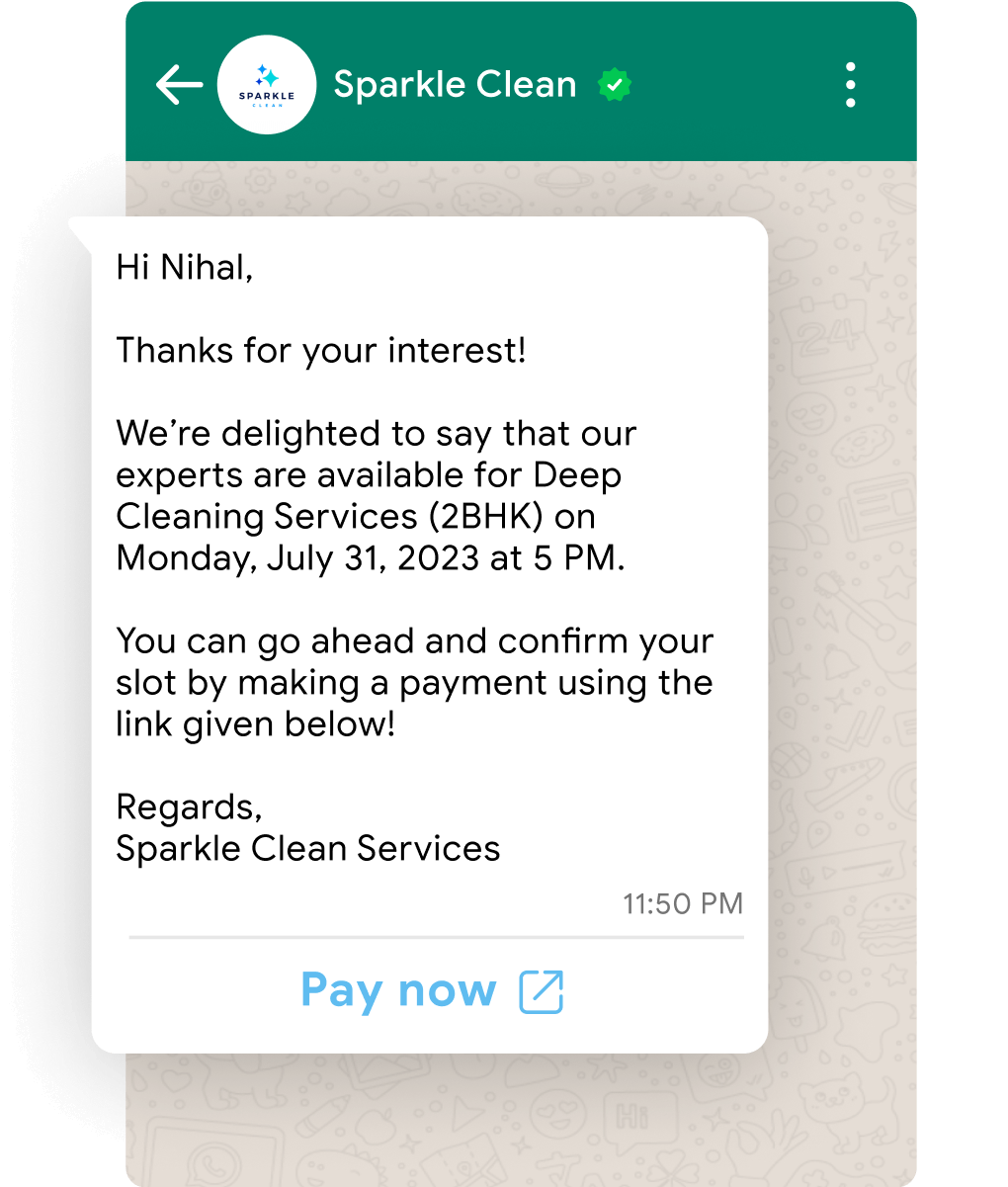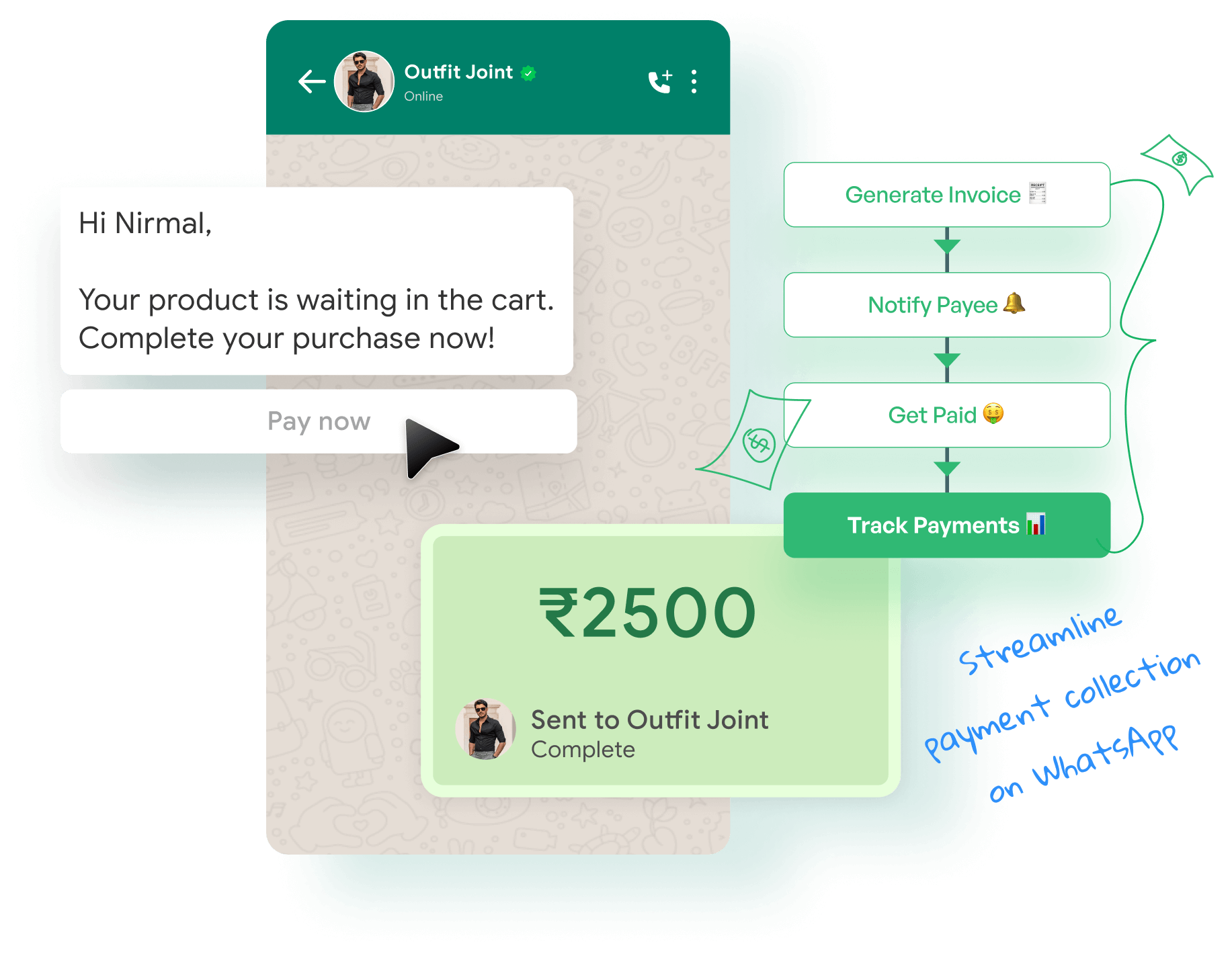 Automate payment reminders, generate one-click payment links, and send instant invoices — all within WhatsApp.